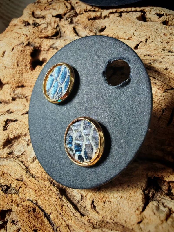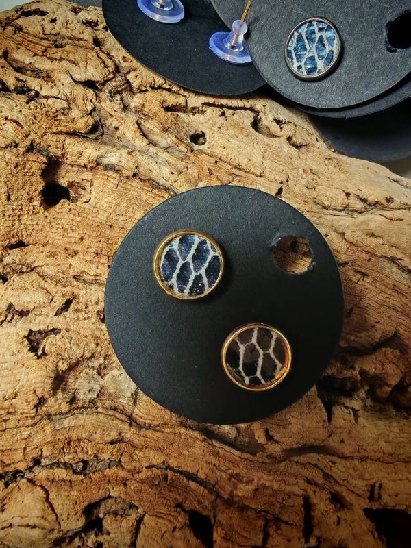Boucles d'oreilles puces en acier inoxydable pour oreilles percées, tissu simili effet serpent crème et taupe ombré